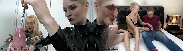 Kinky latex fetish games in FFM 3some way with ultra-kinky Mistress Eleise de Lacy