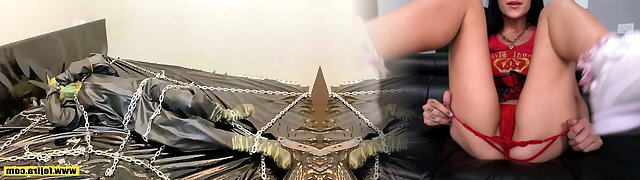 Fejira com Heavy latex and chain self-restrain bondage orgasm