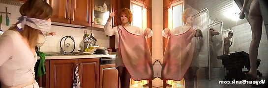 Kitchen activities get wet as the nude blondie gets on the counter with her lesbie brunette friend