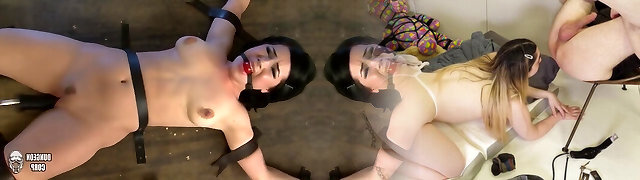 Redhaired teen Sheena Rose in rough lesbian restrain bondage threeway