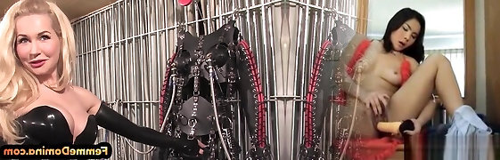 Latex Bdsm Femdom Drains Sissy Dick With Milking Machin