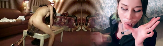 Threesome fuck machine and cock russian teen blond