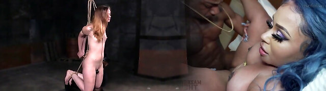 Ebony bdsm sub bound and toyed by maledom