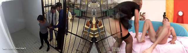 Perverted gynecologist gives the horny nurse a hard squirt tear up