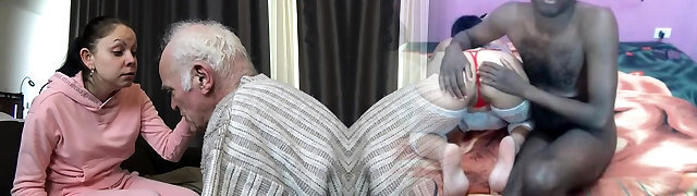 Teen pokes grandpa cock after sucking