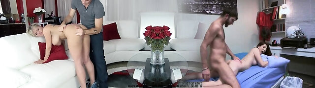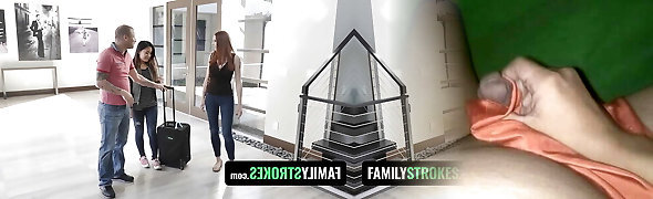 FamilyStrokes - Asian Babe Elle Voneva Takes Step-fathers Cock From Behind While Licking Stepmoms Crevasses