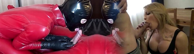 Latex Danielle lock userdate victim on couch and make him sperm fountain