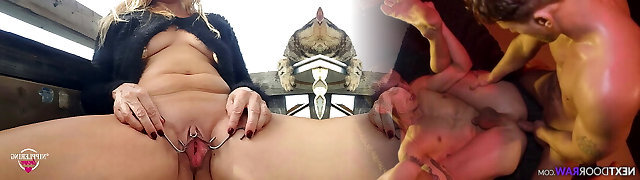 nippleringlover – horny cougar does outdoor nipple torture, stretching extreme nipple piercings with hooks
