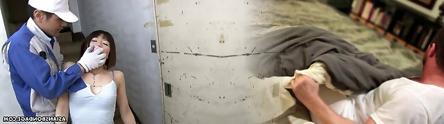Obscene shop guys treat wooly pussy of Japanese office lady Ai Yoneyama right