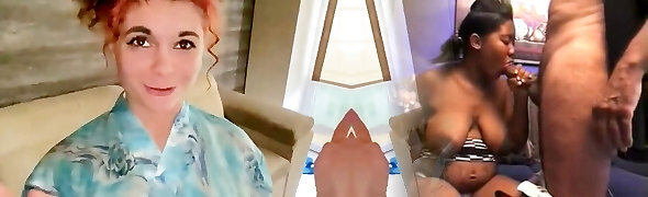 Dashing honeys take turns blowing a thick dong in a horny cfnm party