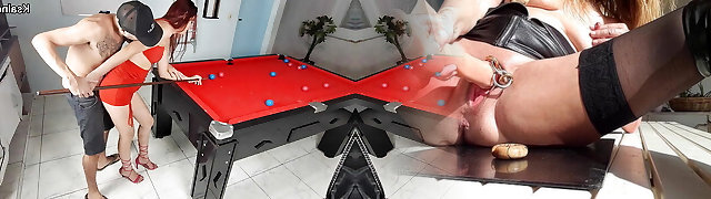 My acquaintance training my wife how to play billiards and I filmed the whole thing