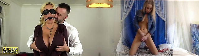 Two busty and vivid blondes have hard BDSM gang fuckfest with two lustful and insane middle aged guys