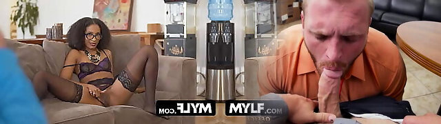 Perfect Assed Ebony Slut Spreads Her Gams And Begins Rubbing Her Wet Pussy In Front Of Her Boss