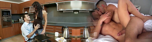 Cougar Boss Fucks Submissive Cuckold and Stranger for Cuckoldest