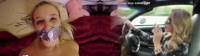 Fake Hostel - Slim blonde babe tied up and fucked by Futa Cougar in body pantyhose taking a creampie in her mouth and inside her soaking wet shaved pussy