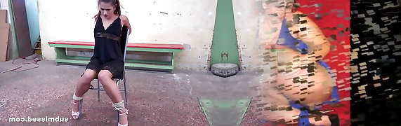 Stunning ass brunette babe gets tied up finger and sex toy plunged into both holes