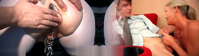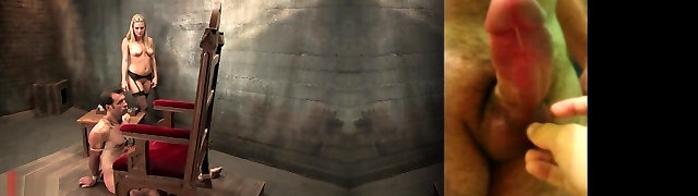 Sexy Busty Blonde MILF Milks the Strung Up Fuck-stick Of Her Sex-slave, Making Him Cum In His Own Mouth