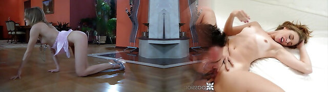 Super-hot sweaty nymphs lick the sweat off each others' bodies