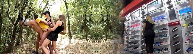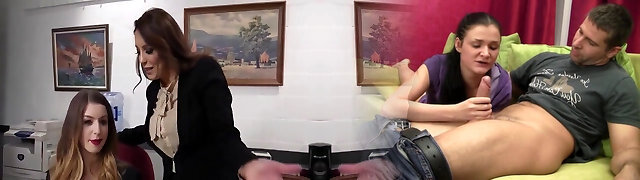 Femdom FFM Threesome Sex for Big Manstick Guy by two Sexy Chicks in Office