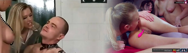 Femdom fetish mistresses fuck bdsm dork with strapon