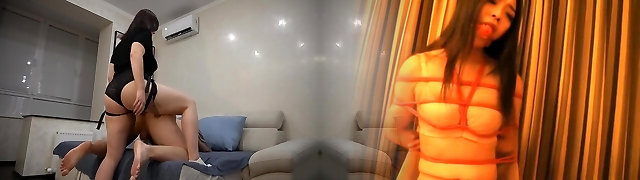 Asian marionette babe strapon fucked by dom MILF in bodystockings