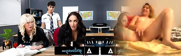 GIRLSWAY - Mean 18yo Brooklyn Gray Gives Good Spanking To Bad Tutor Sheena Ryder And Her Colleague