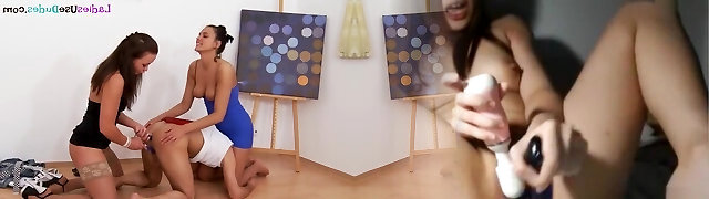 Cfnm Dominas Faux-cock Banging Submissive Booty In 3some