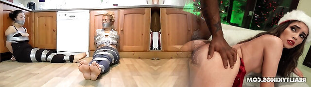 Ebony Teen Tied Down and Spit Roasted by Two BBC's