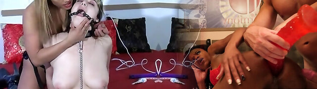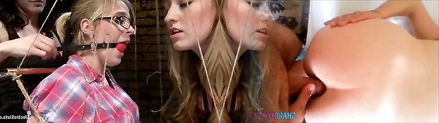 Gonzo lesbian strap on BDSM threesome with Ryan Keely