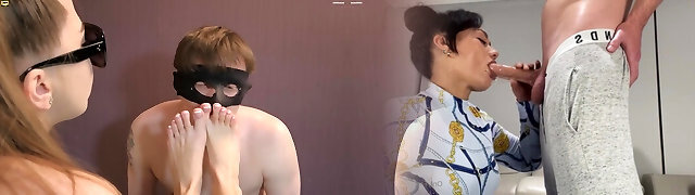 Interracial Threesome Ebony And Brunette Keep A Man Quiet And Give Him Blowjob And Hand Job - Trailer 5 Minute With Gabriel Galli And Sabrina Ice