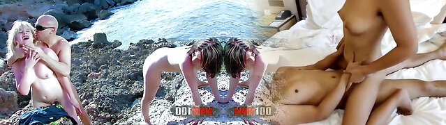 Two slutty little French girls Lillian Love and Lizzy Doll get ravaged by the sea