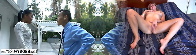 Dudes tie up, punish and fuck and Asian girl at their farm