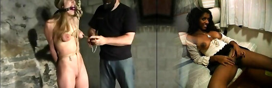 Ebony bdsm sub bound and toyed by maledom