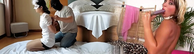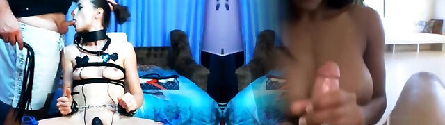Cuffed and tied up webcam woman is smashed rock-hard by sex-machine multiple orgasm