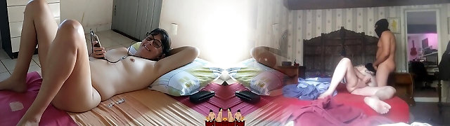 Hubby fucks whore while his wife watches and masturbates