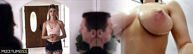 Sexy housewife masturbates in the shower as she is astonished and invited into wild sex with a immense rod to stick